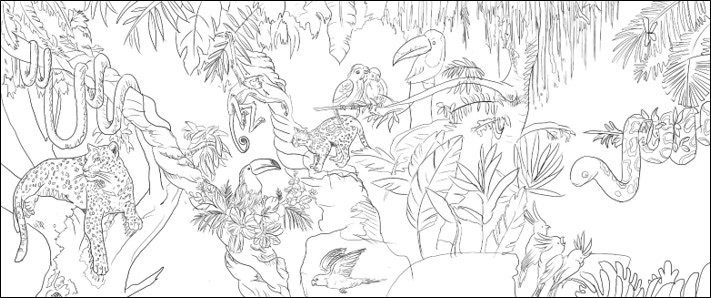 프로시쥬얼한 정글의 모습을 표현하기 위해