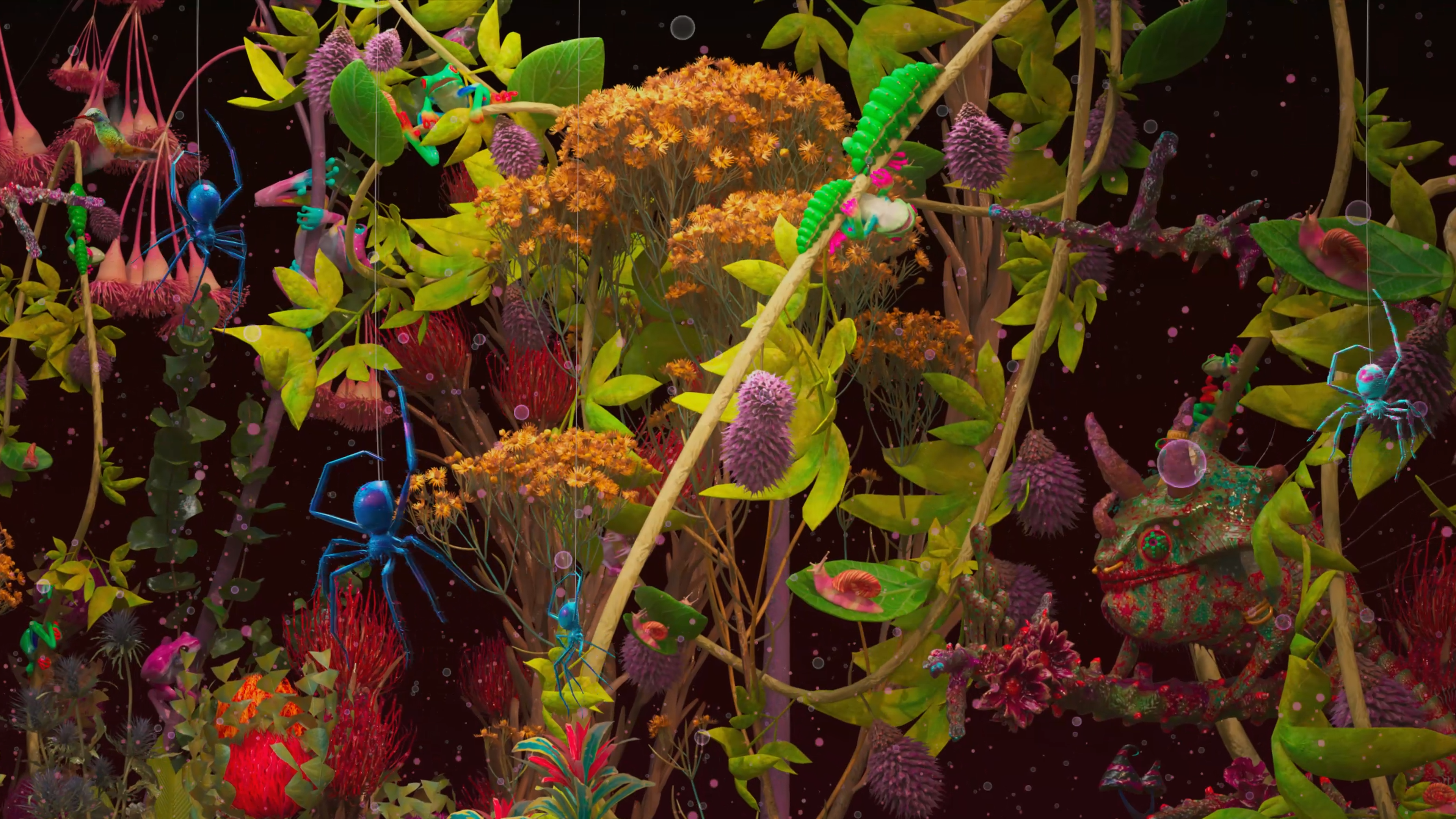 배경은 점차 어두워지고, 벌새가 주인공으로 부각되며 꽃과 곤충, 파충류가 어우러진 새로운 세계가 펼쳐집니다.