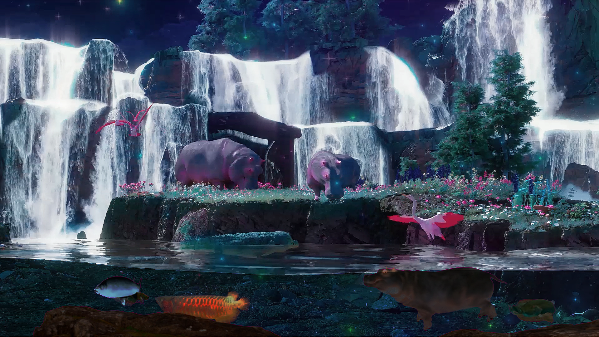 Each animal character was assigned unique motion and personality traits, yet their interactions collectively expressed the ecological interconnection.